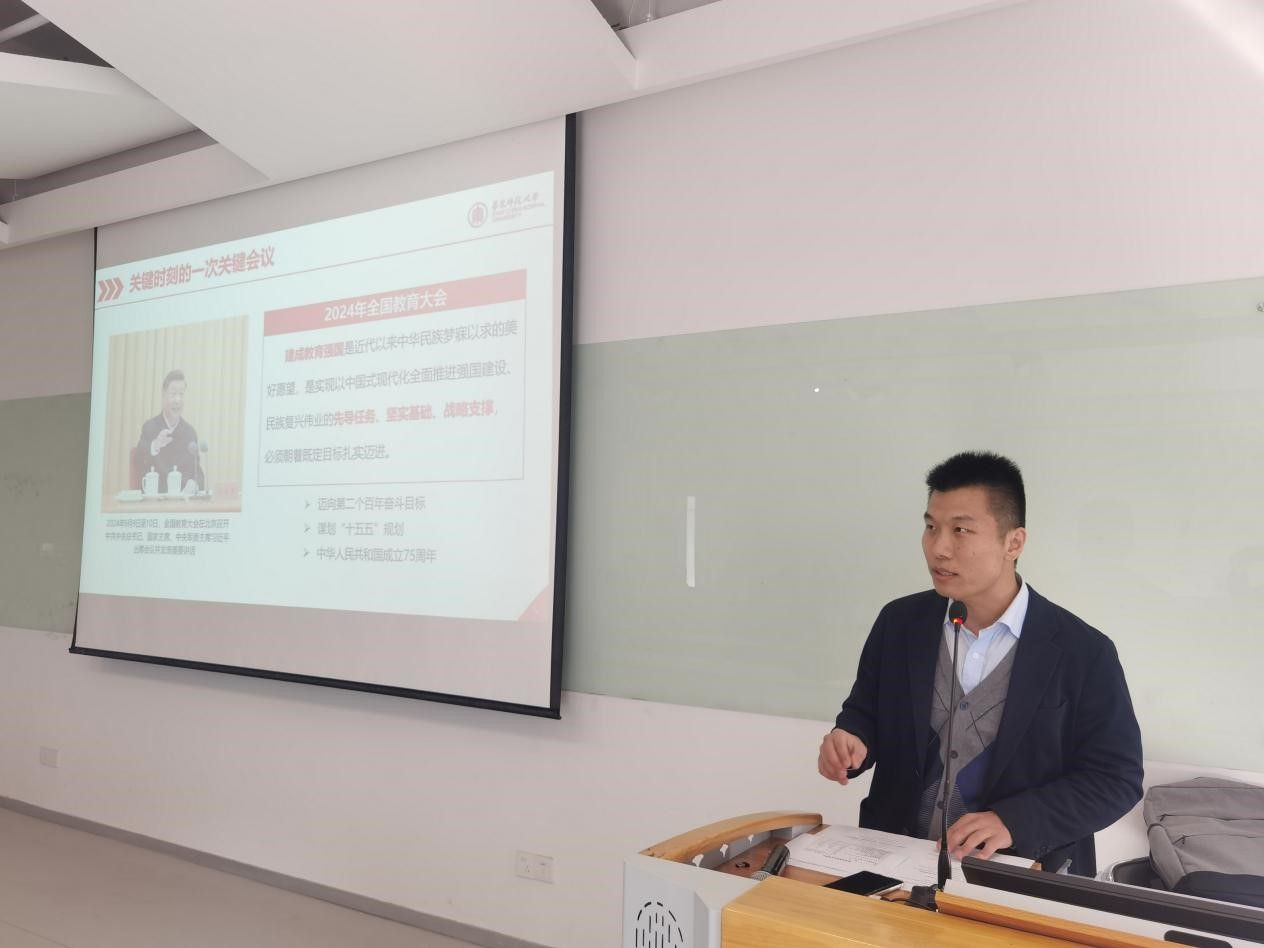 习近平总书记在全国教育大会上强调指出,要“紧紧围绕立德树人根本任务,朝着建成教育强国战略目标扎实迈进。”高校教育应全面贯彻党的教育方针,以立德树人为根本,坚持不懈用习近平新时代中国特色社会主义思想铸魂育人。吴晶老师紧密围绕“深化教育综合改革,加快建设教育强国”主题,就深入学习贯彻全国教育大会精神、全面把握教育强国建设的深远历史意义、从教育的三大属性理解深化教育综合改革的主要任务三个方面结合具体事例及相关统计数据进行了生动的讲解,深刻感受到了新时代教育事业的历史性成就与变革。