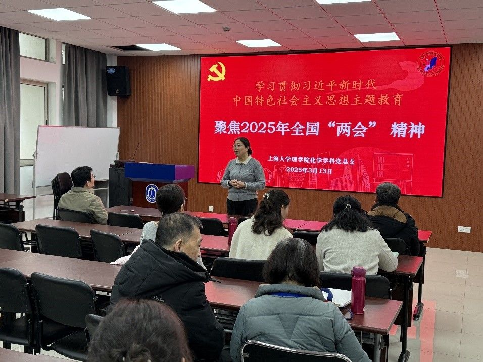 为学习贯彻习近平新时代中国特色社会主义思想主题教育,聚焦2025年全国“两会” 精神,培育和践行社会主义核心价值观,了解当前国际国内局势,推动党建与学科发展深度融合,化学学科党总支于2025年3月13日下午在校本部HA102组织开展“两会”精神主题党日活动。化学学科50余名党员和入党积极分子参加,主题党日活动由化学学科党总支书记邢菲菲主持。
