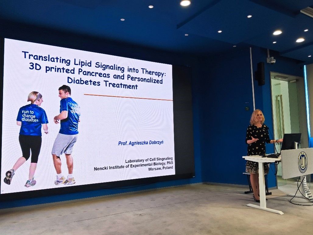 Agnieszka Dobrzyn教授作了题为“Translating Lipid Signaling into Therapy: 3D Bioprinted Pancreas and Personalized Diabetes Treatment”的精彩报告,详细介绍了她的实验室在胰腺器官发生过程中,以及胰岛素抵抗和糖尿病状态下 α-β 细胞通讯中,受脂质介质影响的信号通路的研究。多布任教授是跨行业联盟的领导者之一,该联盟致力于研发 “人类仿生胰腺”—— 一种用于胰岛移植的 3D 功能性支架,将其作为治疗糖尿病的成熟方法。Agnieszka Dobrzy教授还分享了平衡工作与家庭方面的经验。